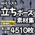 AIイラストで生成した「立ちポーズイラスト」4510枚を収録した素材集です。